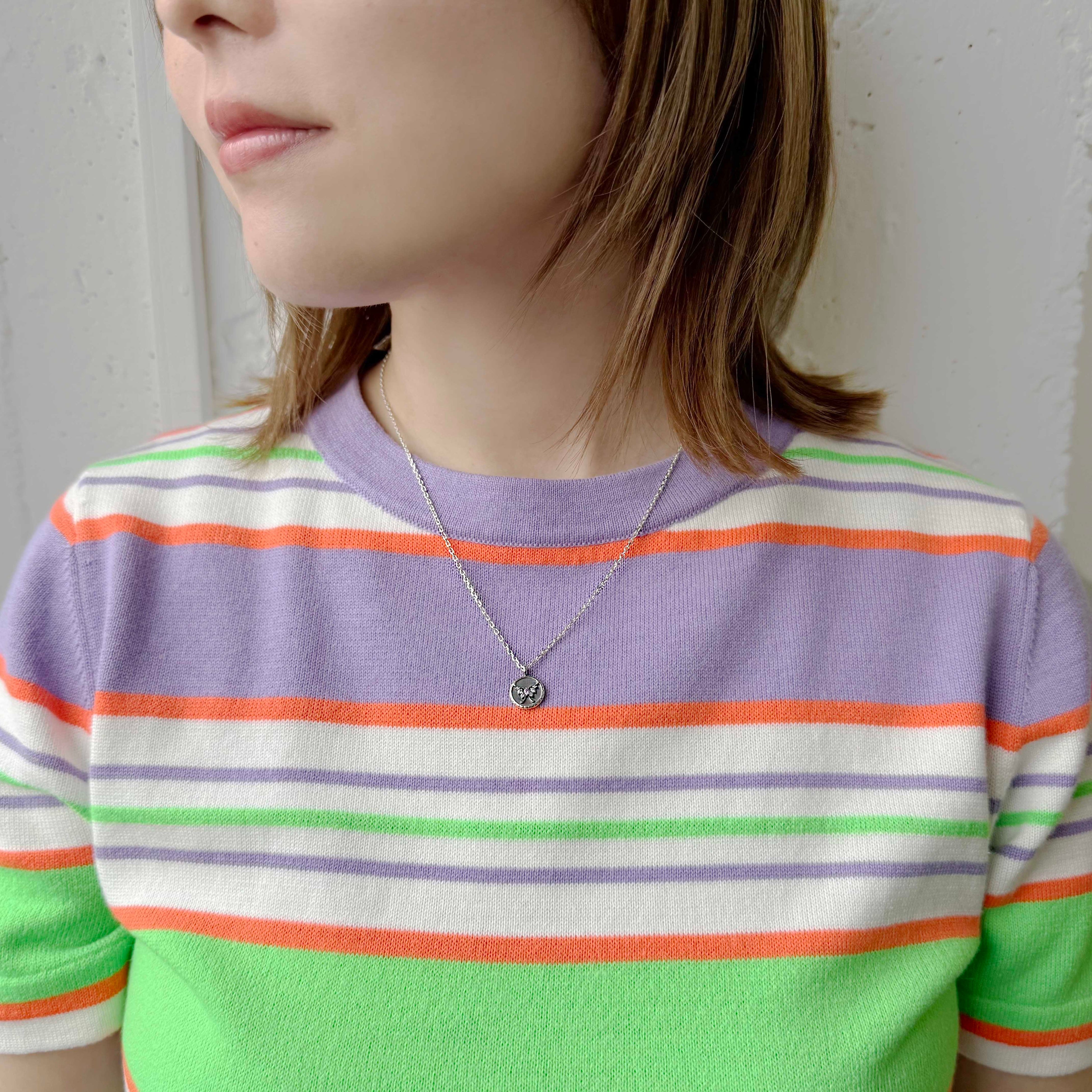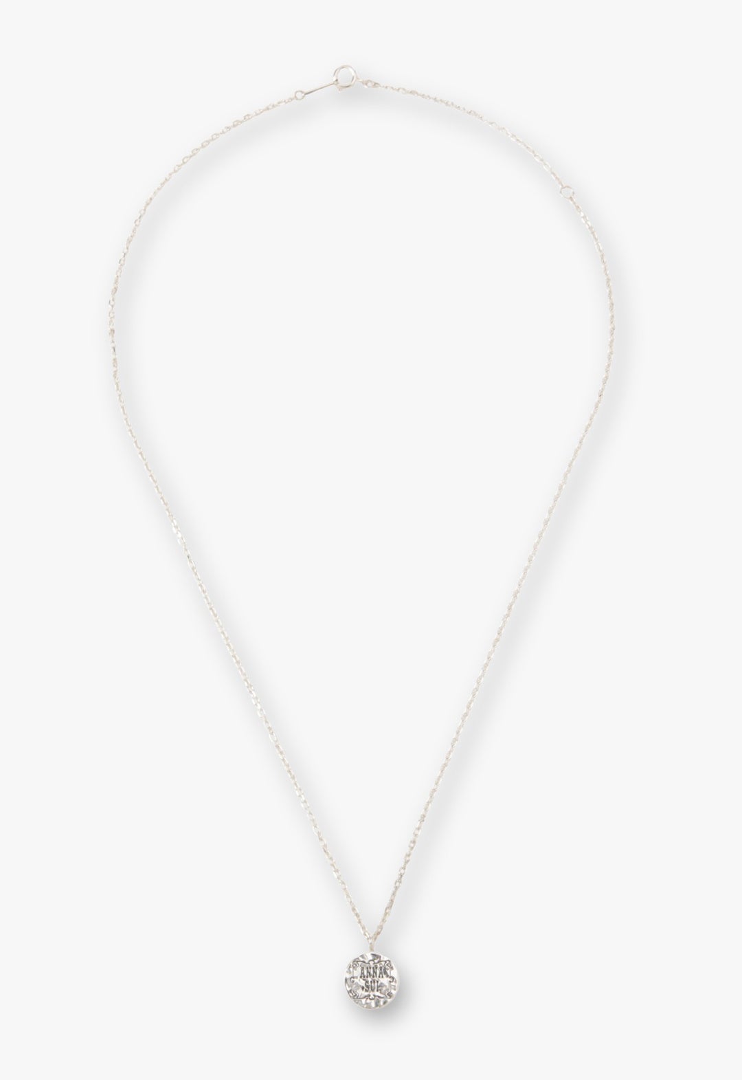 相反するテイストのミックスが魅力なANNA SUIのアクセサリーより、シグネチャーモチーフである蝶をあしらった、シルバーのコインネックレスが登場。