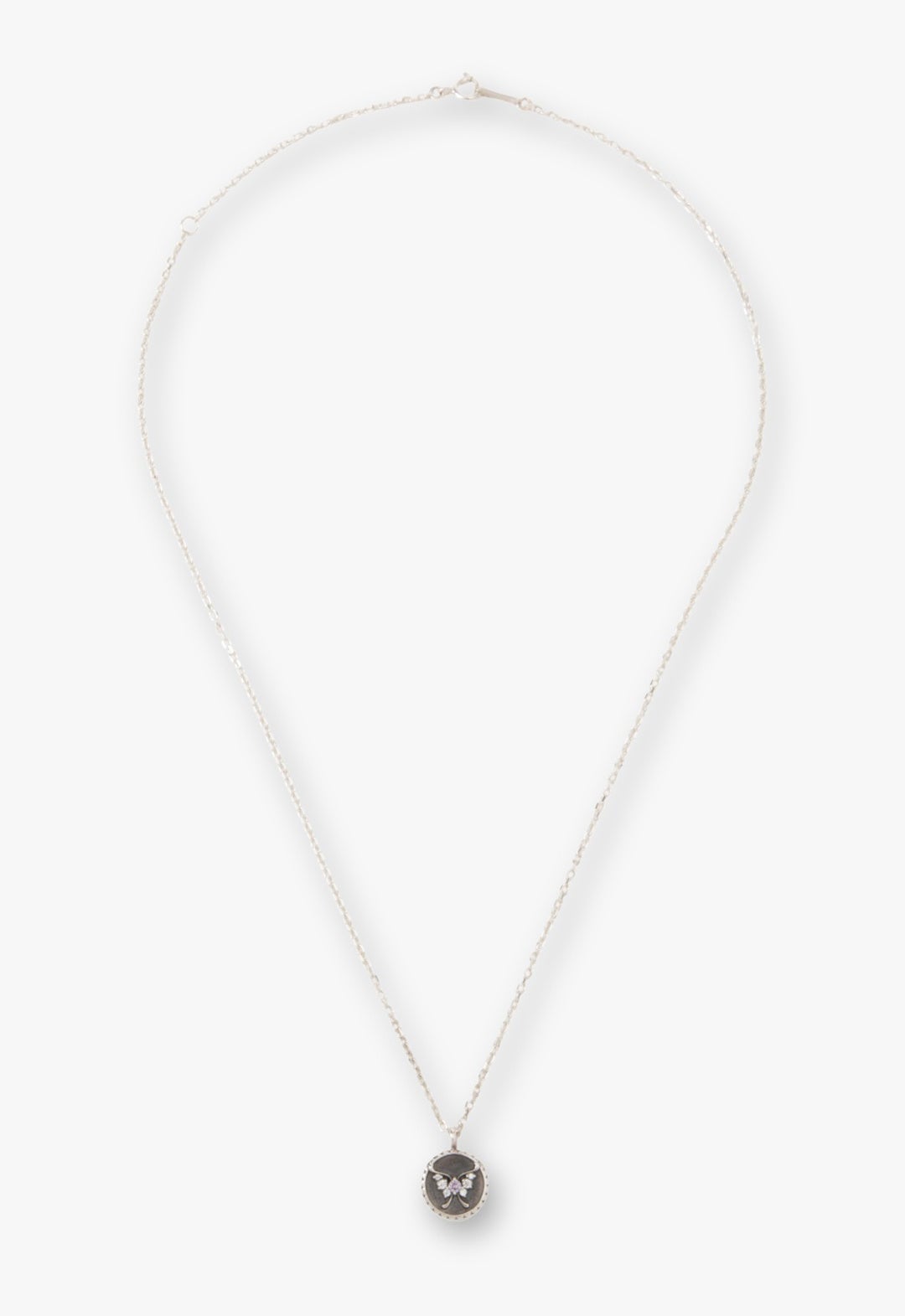 「幸運や金運を招く」とされ、古くからお守りや贈り物として愛されてきたコインネックレスに、繊細な蝶のデザインが浮かび上がって見えるよう、いぶし加工をプラス。