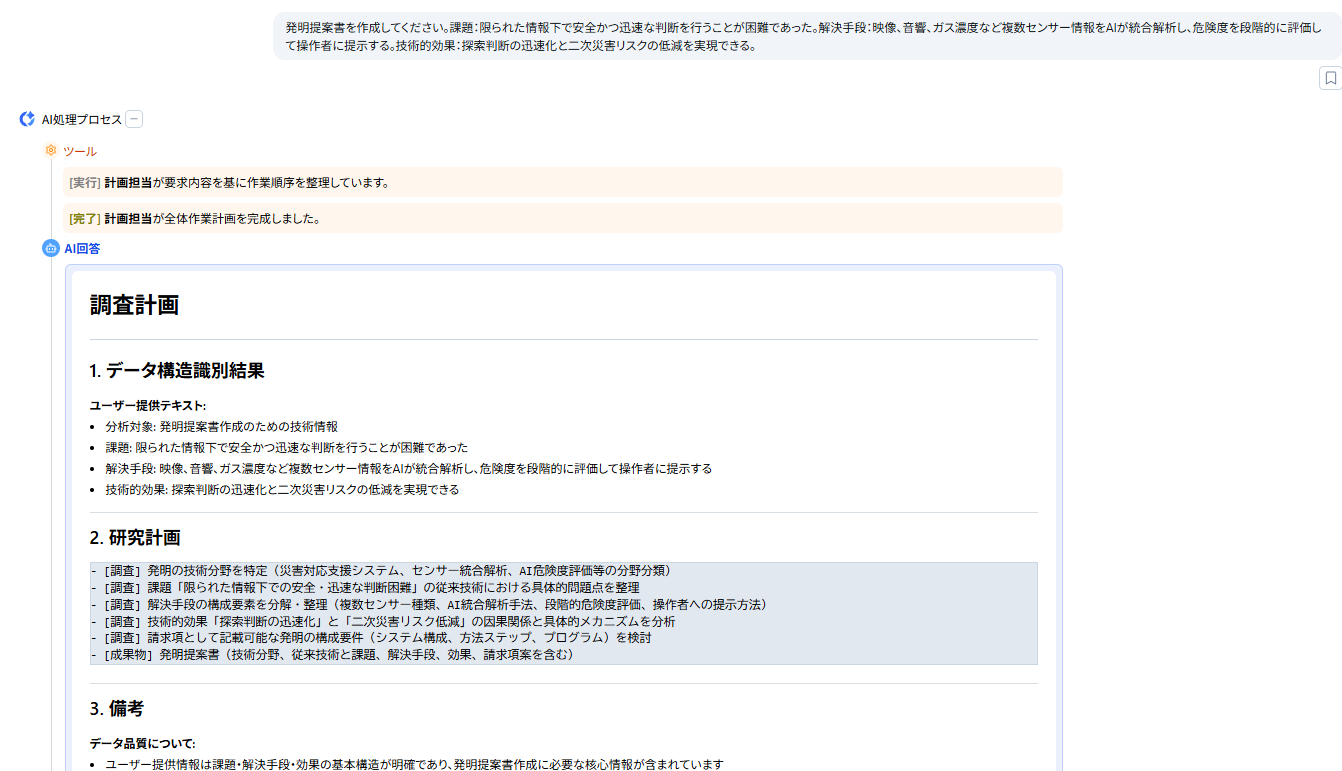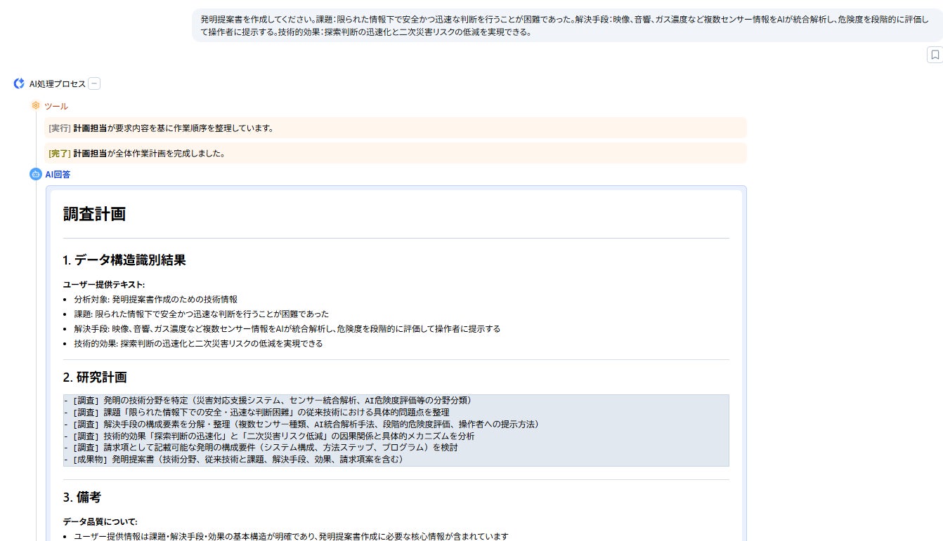 限られた情報下での判断負荷という課題に対し、発明要素の整理から発明提案書作成までをAIで支援