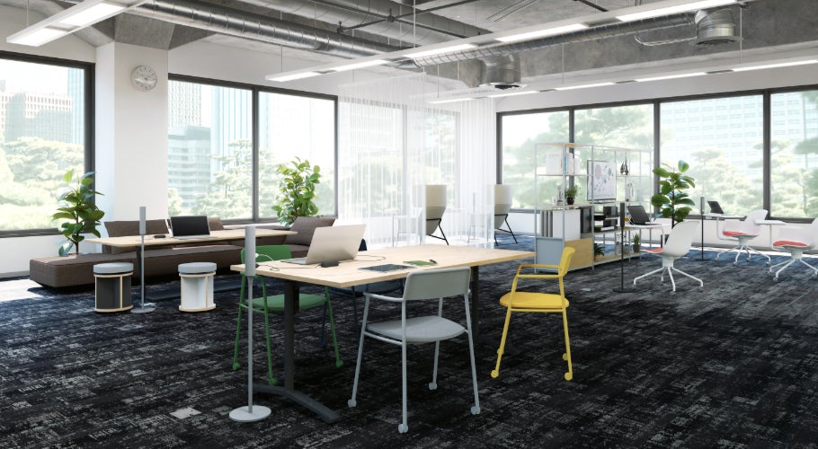 当社は、電源ポール「エナジーポール」で働く場所をさらに快適にするオフィス空間づくりに貢献します。