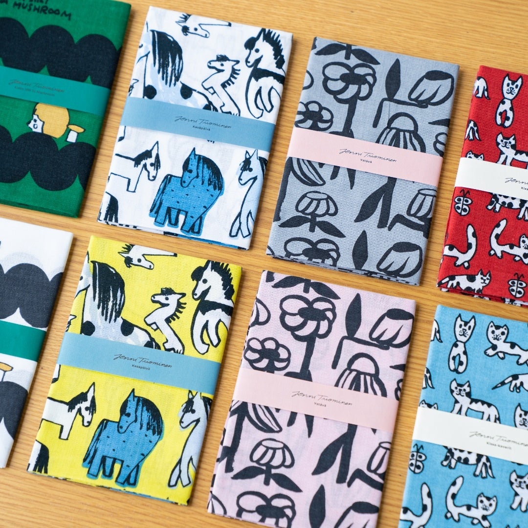 現役でマリメッコのデザイナーとしても活躍するフィンランドの陶芸家、アーティストのイェンニ・トゥオミネンの手拭いは全8種です。