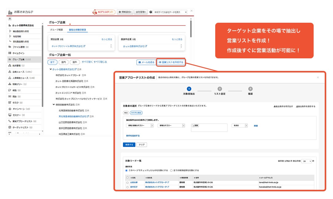 ターゲットとする企業を定めたら、その場で営業リストを作成することも可能です。