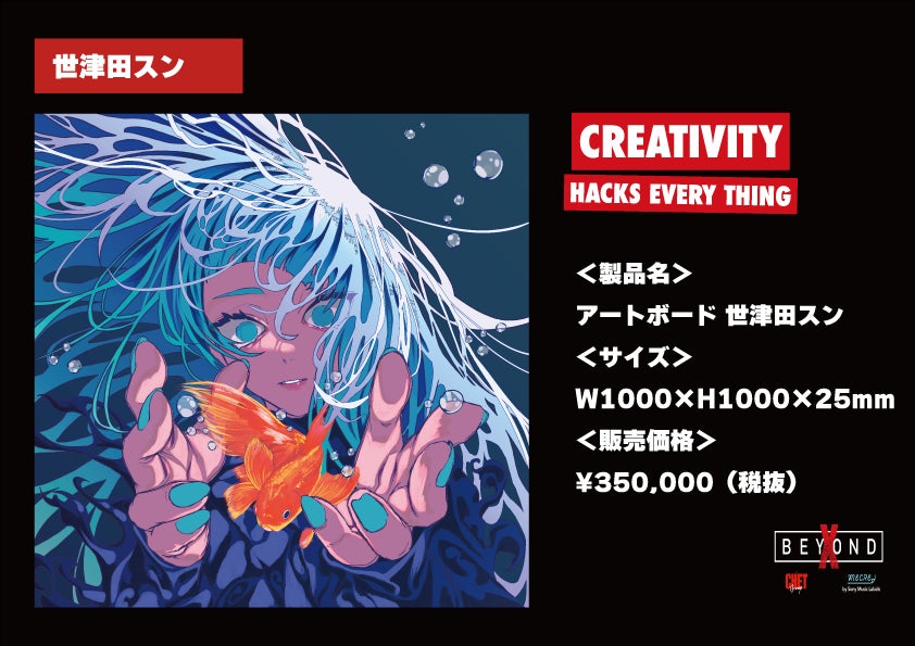 「クリエイティビティ×テクノロジー」でIP開発を行う株式会社CHET Group(本社:東京都品川区 CEO:小池祐輔 以下、CHET)と、株式会社ソニー・ミュージックエンタテインメントが運営するクリエイタープラットフォーム”MECRE”の共同プロジェクト『X Beyond -5055年の世界-』。CHETが展開するカルチャー・コレクティブ・アーティスト & ブランド Creativity Hacks Every Thing のPOP-UP SHOPにおいて、アーティスト・クリエイターのコラボアート作品展「X Beyond O2O2V」を、2024年7月17日(水)~京都 蔦屋書店にて開催いたします。