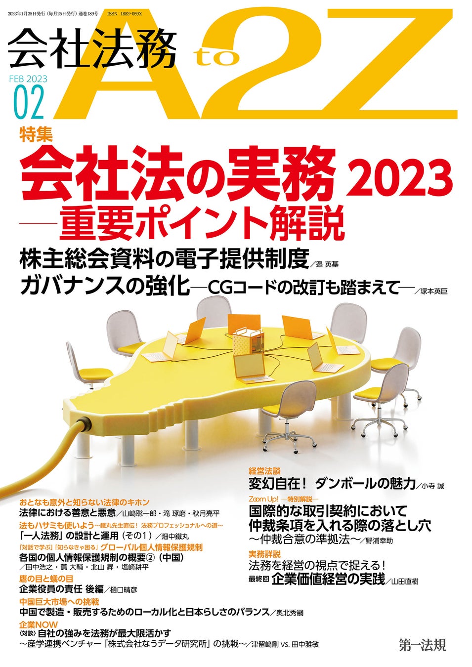 法律関連出版物、各種データベースを提供する第一法規株式会社(所在地:東京都港区、代表取締役社長:田中 英弥)は『会社法務A2Z 2023年2月号』を2023年1月25日に発刊しました。