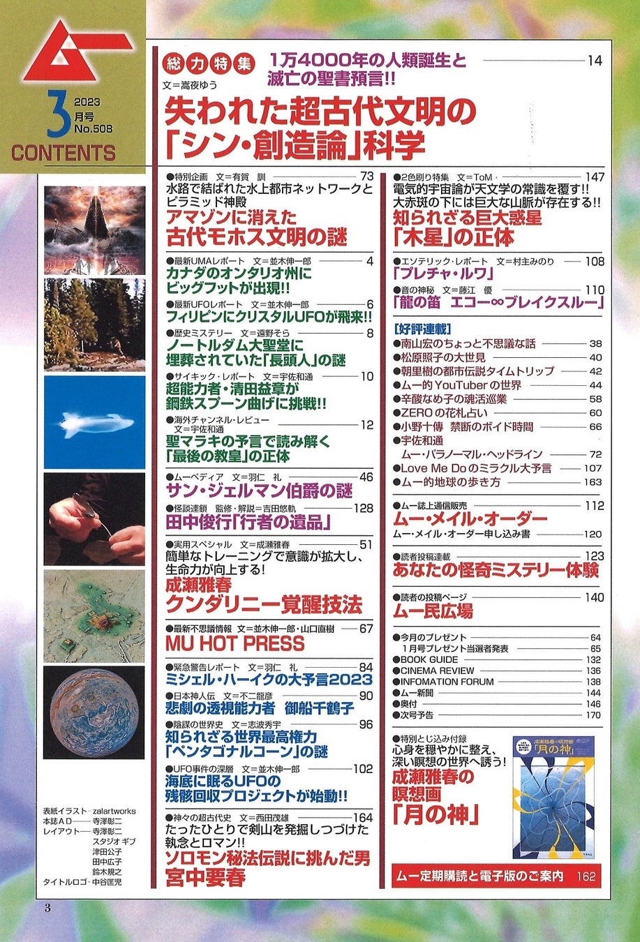 ムー的地球の歩き方/南山宏のちょっと不思議な話/松原照子の大世見/朝里樹の都市伝説タイムトリップ/辛酸なめ子の魂活巡業/ZEROの花札占い/LOVE Me Doのミラクル大予言……ほか