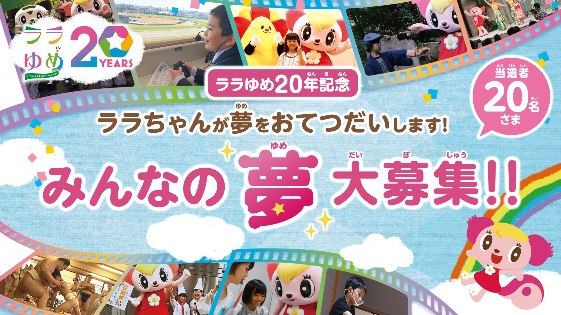 20年目の『ララゆめ』は20名の子どもたちの夢をかなえます!3月9日(木)より過去最大規模で夢を募集
