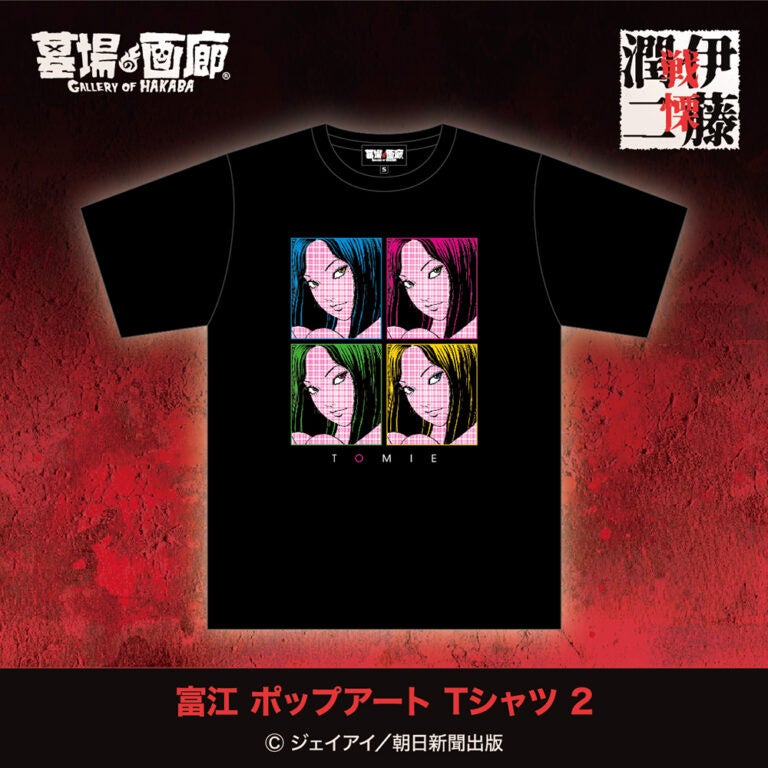 代表作『富江』シリーズの主人公・富江を、遊び心あふれるポップアートで表現したTシャツの第二弾が登場だ。