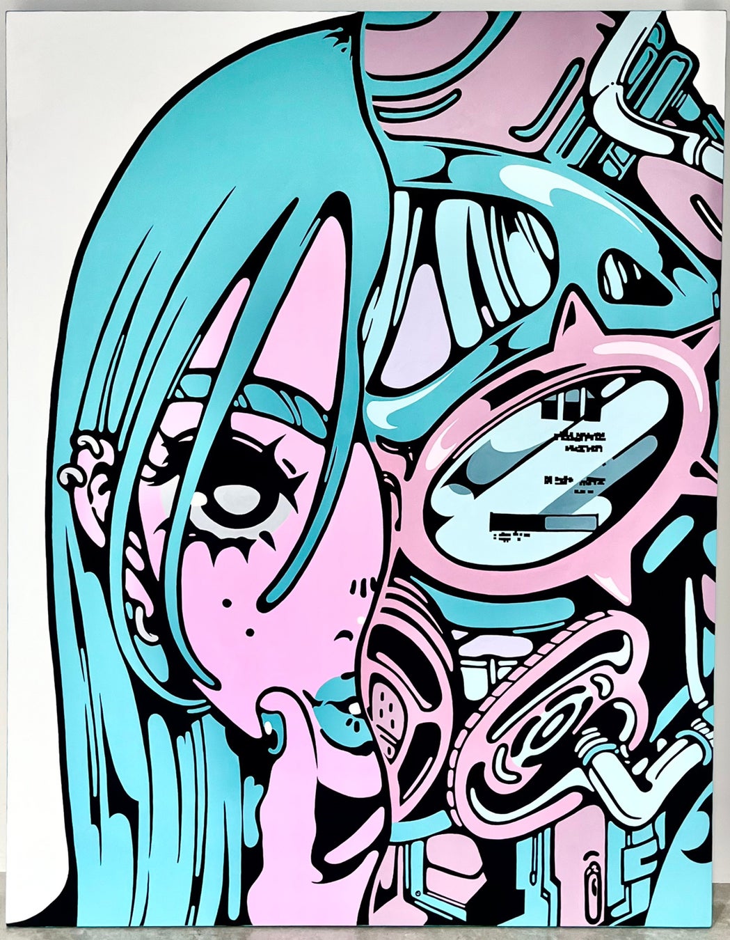 どこか毒気を感じる大胆なタッチとポップなパステルカラーが特徴的。