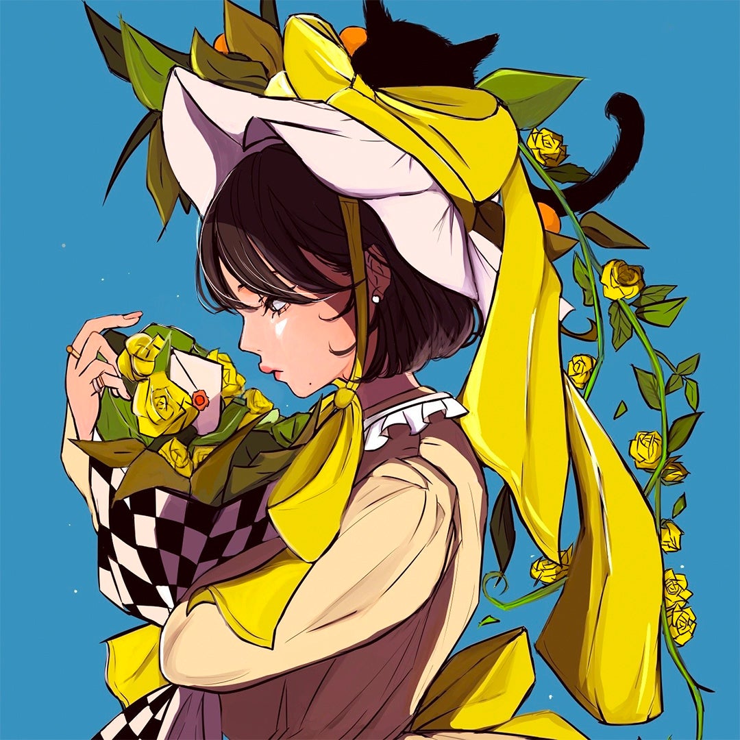 創作は女の子を中心に植物などのモチーフを取り入れ、瞬間に現れる生命の華やかさや儚さ、美しさを表現。強い瞳でインパクトのあるイラストを描く。