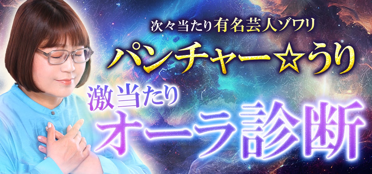 TVやSNSで露出急増中!正真正銘の視える人パンチャー☆うりのオーラ診断サイトが登場。本鑑定では、人が発しているオーラの色を視ていきます。体にまとうオーラは、まさに十人十色。その人それぞれが違う色や形のオーラだからこそ、性格・考え方・今の状況、そして抱いている想いも様々です。それら全てを抜群の視る力によって明らかにし、お伝えします。