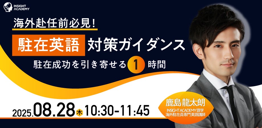 グローバル⼈材育成・研修業を⼿掛けるインサイトアカデミー株式会社(本社:東京都港区新橋、代表:金 珍燮)は、無料webセミナー「【海外赴任前必見!】”駐在英語” 対策ガイダンス~駐在成功を引き寄せる1時間~」を開催致します。