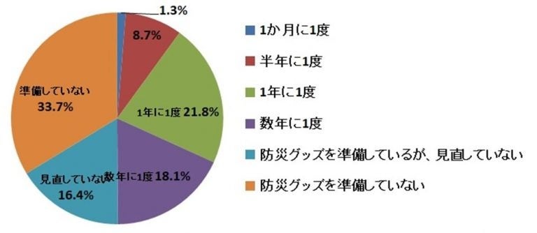 - 防災グッズの見直しは「1年に1度」が最多