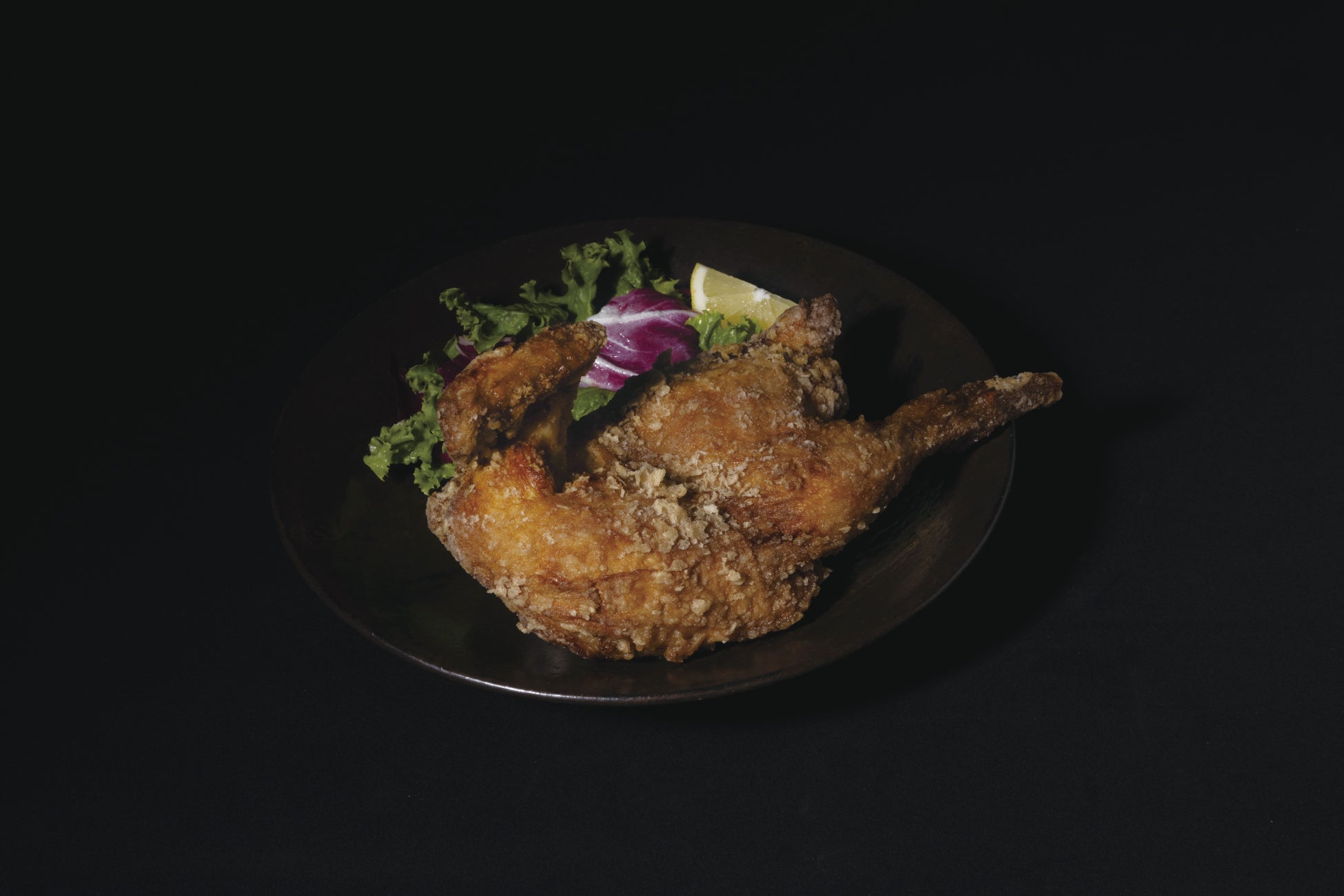 岩手県の水の綺麗な清流近くで育った「みちのく清流どり」を半羽分使用し、豪快に揚げた贅沢な唐揚げです。1枚でモモ肉やムネ肉、手羽など色々な部位ごとの味わいを楽しめます。