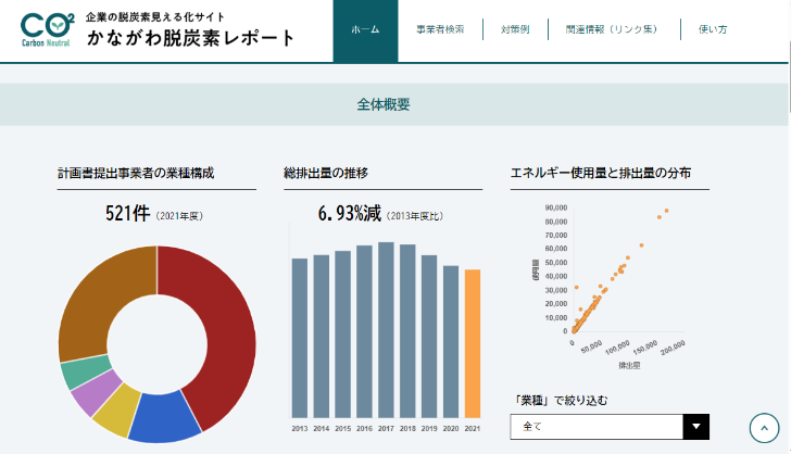 企業の脱炭素見える化サイト「かながわ脱炭素レポート」