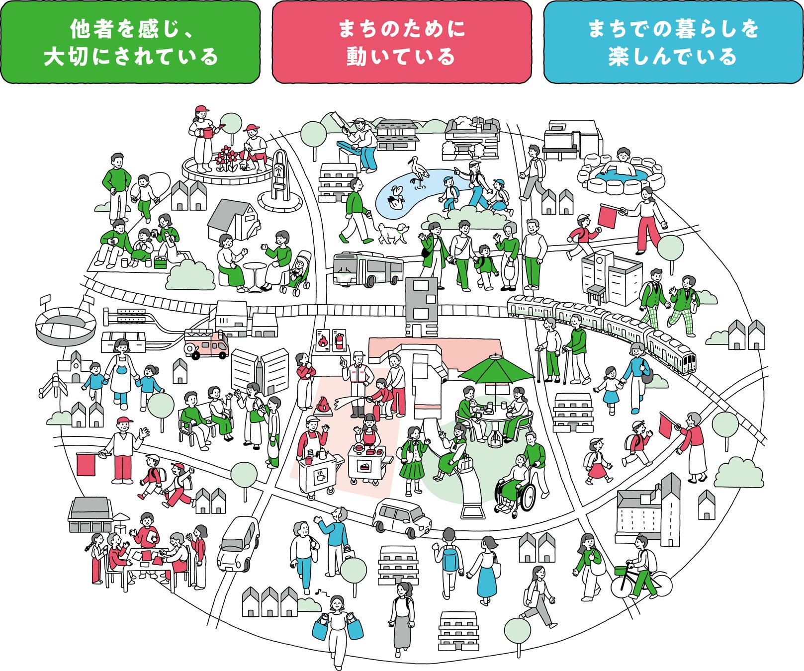 HITOTOWAは、人と和のために仕事をし、都市の社会環境問題の解決に取り組むことをミッションとしています。例えば、防災減災、子育て、生きがいの創出。それらをまちで暮らす人々が助け合える関係性と仕組みをつくるべく、ネイバーフッドデザイン、HITOTOWAこども総研、ひととわ不動産という3つのオリジナリティある事業を展開しています。