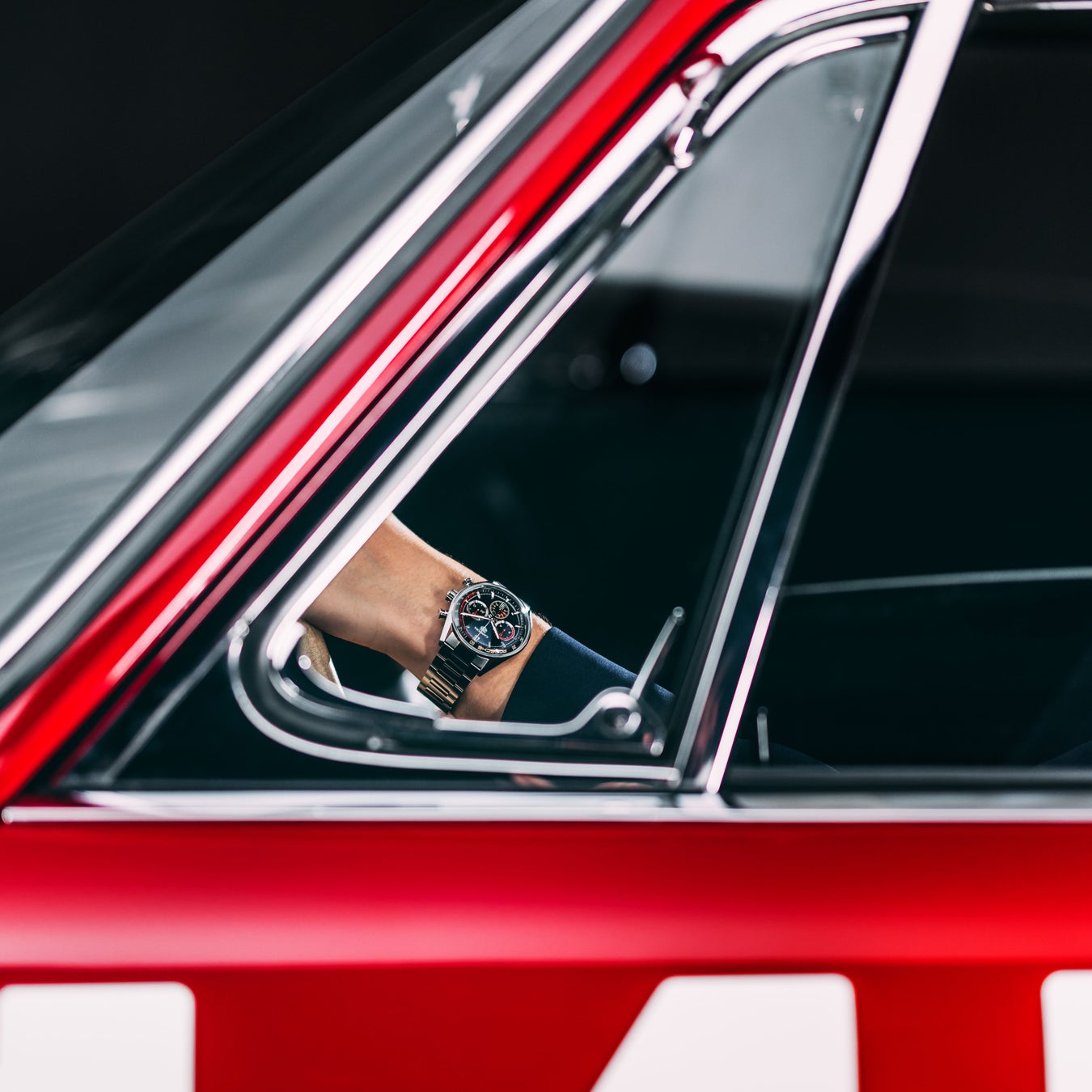 「タグ・ホイヤー カレラ クロノスプリント x ポルシェ ラリー」は、自動車デザインの重要なディテールを反映させ、タグ・ホイヤーとポルシェがスピード、精度、クラフツマンシップの上に築き上げてきたレガシーを継承しながら、ウォッチメイキングの限界を押し広げています。そこで語られているのは、性能、卓越性を目指す両ブランドに共通する熱い想いに賛歌を奏で、歴史にオマージュを捧げる、単なる時間を計測する道具を超えたクロノグラフのストーリーです。