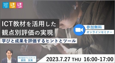 AIを活用したアダプティブな対話式 ICT 教材の開発と提供を行う株式会社すららネット(本社:東京都千代田区、代表取締役:湯野川孝彦)では、2023年7月27日(木)16時より、公立高校向けに、「ICT教材を活用した観点別評価の実現」をテーマにしたオンラインセミナーを開催します。