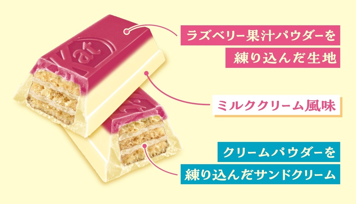 ・濃厚なクリームのコクとラズベリーのさわやかな酸味が絶妙なハーモニーを醸し出す、華やかな2色の特別な「キットカット」。