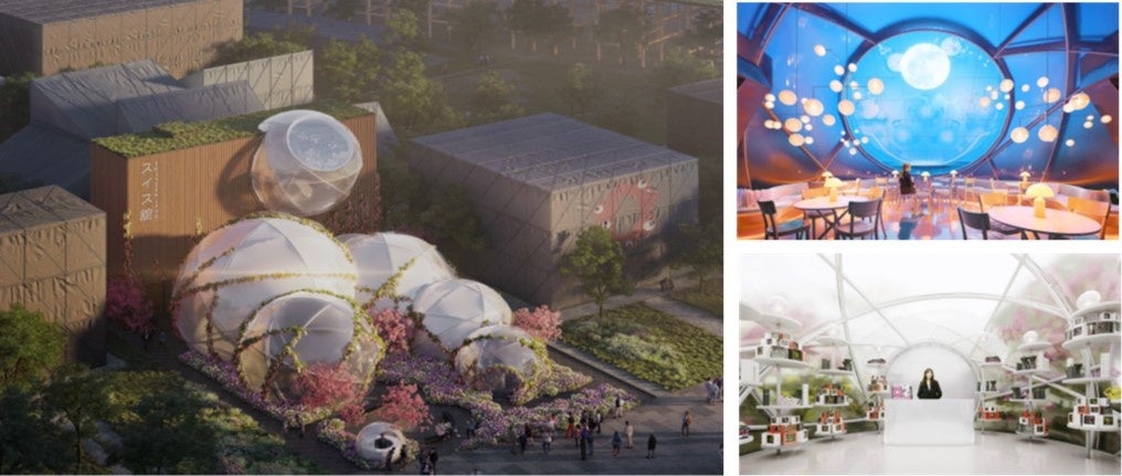 スイスパビリオンのテーマは「人間拡張(オーグメンテッド・ヒューマン/4月13日~6月10日)」、「生命(ライフ/6月11日~8月12日)」、「地球(プラネット/8月13日~10月13日)」の3つです。大阪・関西万博は、持続可能な未来に関する専門知識を共有する場であり、スイスはその意義に貢献することを目指しています。スイスパビリオンでは、1階に4つの球体をつなぐ軽量膜構造建築を採用し、環境負荷を最小限に抑えたパビリオンを実現しています。