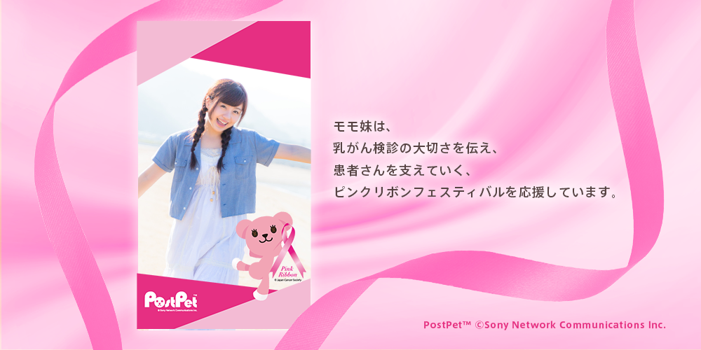 アララ、乳がんの早期発見・早期治療を呼びかける「ピンクリボン」運動をARで支援 「ピンクリボン」公式キャラクター「PostPet」のモモを起用したARフォトフレームを制作