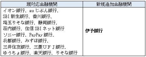 伊予銀行からの即時入金サービス(手数料無料)を開始
