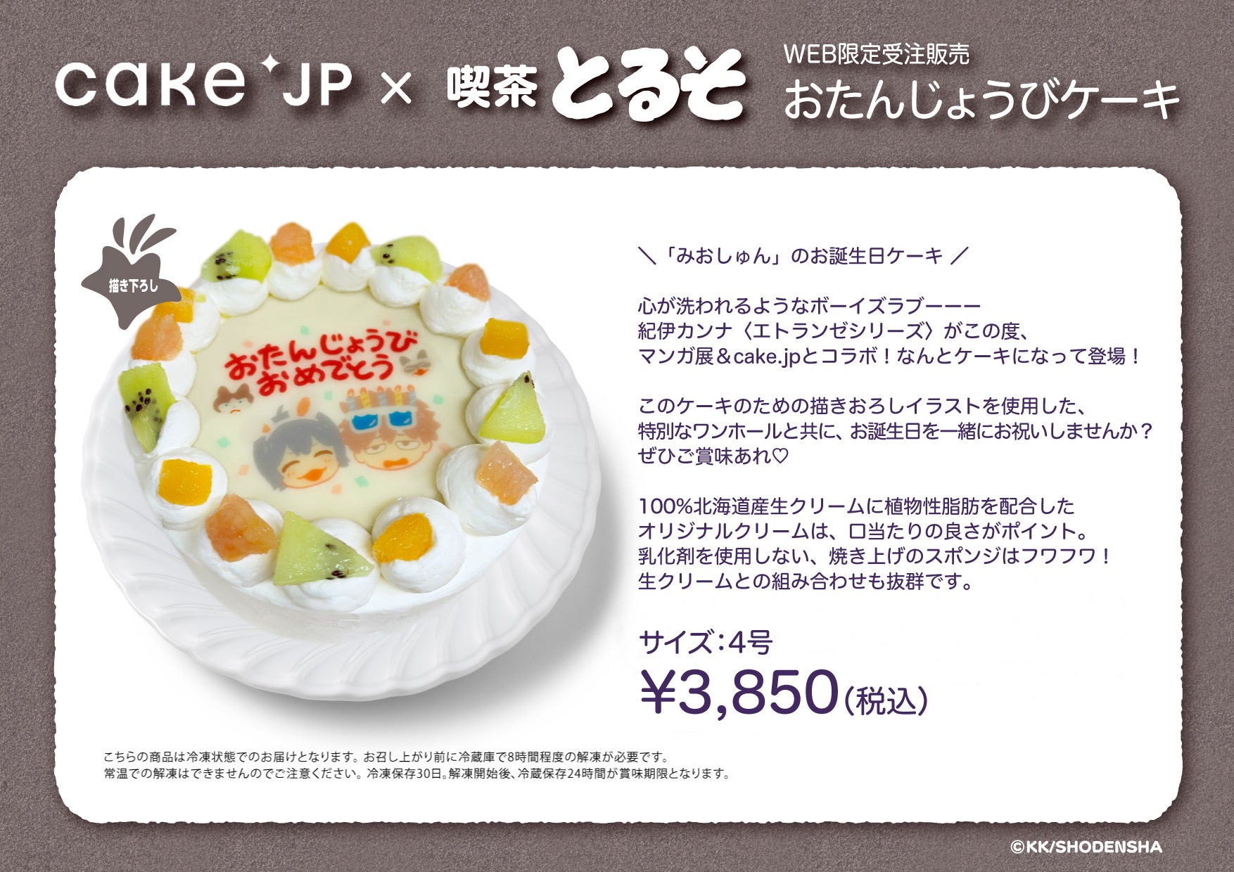 株式会社TORICO(本社:東京都千代田区、代表取締役社長:安藤拓郎)は、現在同社が運営する「マンガ展」東京・名古屋・大阪ならびに台湾店で2023年3月28日(火)まで巡回開催中イベント【紀伊カンナ原画展&コラボカフェ喫茶とるそ】の特別企画として、ケーキ・スイーツ専門通販サイト「Cake.jp(ケーキジェーピー)」を運営する株式会社Cake.jp(本社:東京都新宿区、代表取締役:高橋 優貴)との共同特別企画商品「喫茶とるそオリジナルホールケーキ/『春風のエトランゼ』みおしゅんお誕生日ケーキ」を企画・販売いたします。