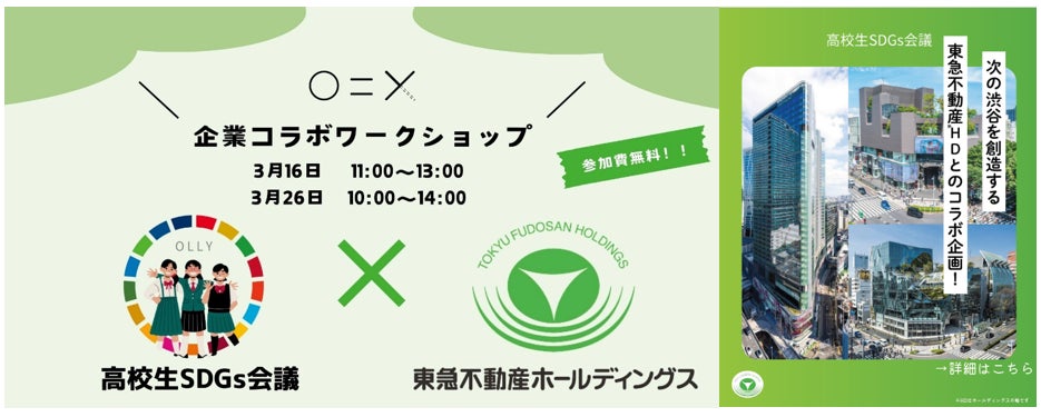 東急不動産ホールディングス株式会社(本社:東京都渋谷区、社長:西川 弘典、以下「当社」)は、学生団体olly(活動拠点:東京都渋谷区、代表:澤登 公孝、以下「olly」)と共同で「高校生SDGs会議」を3月26日に開催いたします。当社は、2030年に向けた長期ビジョン「GROUP VISION 2030」に基づき、事業を通じて、「誰もが自分らしく、いきいきと輝ける未来の実現」に取り組んでおりますが、高校生を含む若者世代は、当社にとって重要なステークホルダーのひとつである未来世代です。