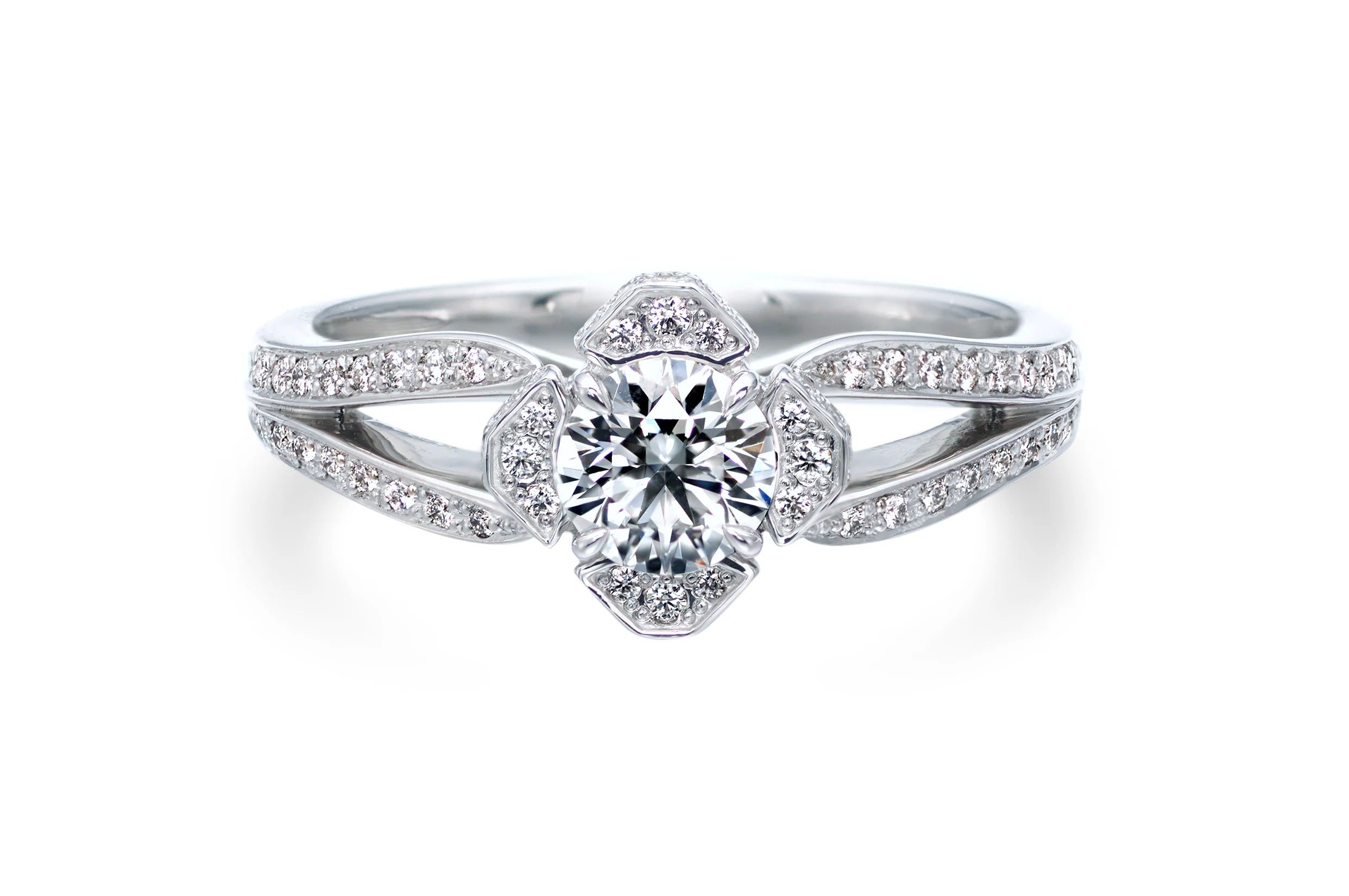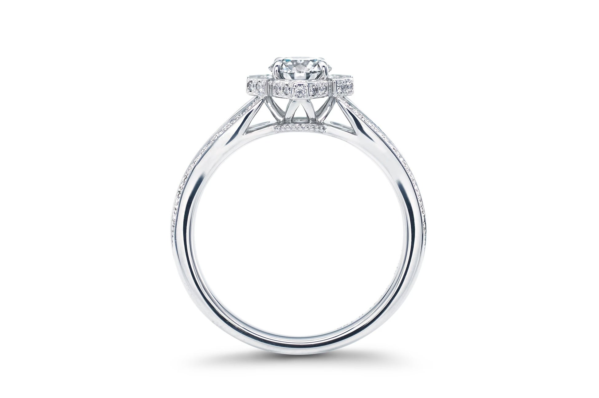 ヨーロッパの美意識をダイヤモンドのセッティングに取り入れた独創的なデザインの開発(リフレクティブセッティングやブラックダイヤモンドをセットしたデザイン)。熟練職人が織りなす精緻な技術(ミルグレイン)を駆使し、手作業で創り上げ完成させるディテール。これらヨーロッパの歴史ある文化にインスパイアされたデザインと日本の緻密な技術の融合により、洗練された美しいダイヤモンドジュエリーへと昇華させます。