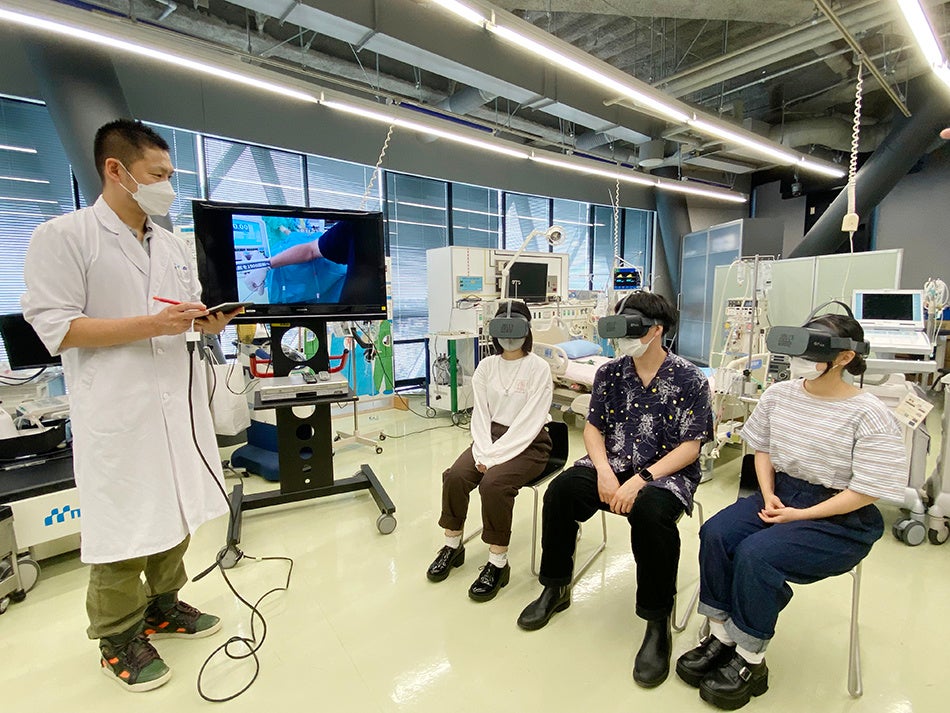 VRを活用することで、自分が目指す職種の視点だけではなく、医師やコ・メディカルスタッフの目線を、360度の視野で体験することができます。医療現場での全体の動きを把握することで、チーム医療への理解や臨床判断能力を高めることが狙いです。