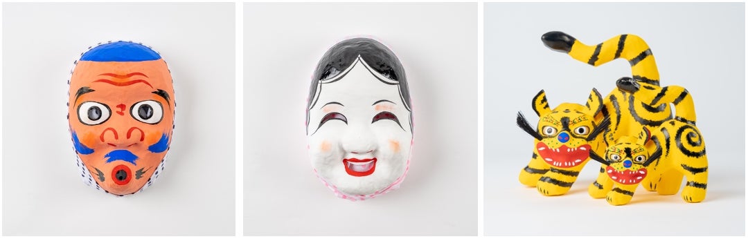 だるま、起き上がり小法師、赤べこなど、日本でよく知られる張子は、福島県を代表する民芸品です。高柴デコ屋敷と呼ばれる張子工人たちの集落は、福島県の伝統的工芸品に指定されている「三春張子」の発祥の地で、木型を彫り、和紙を張り、絵付けをするといった手仕事が300年もの間、受け継がれています。現在もここで郷土玩具を作り続ける工房とBEAMS JAPANとのコラボレーションで、この度4種の特注品が完成しました。福島が輩出したウルトラマンの生みの親、円谷英二氏に因んで、高柴デコ屋敷を代表するひょっとこのお面と腰高虎にウルトラマンをデザインした、史上初の特別企画です。