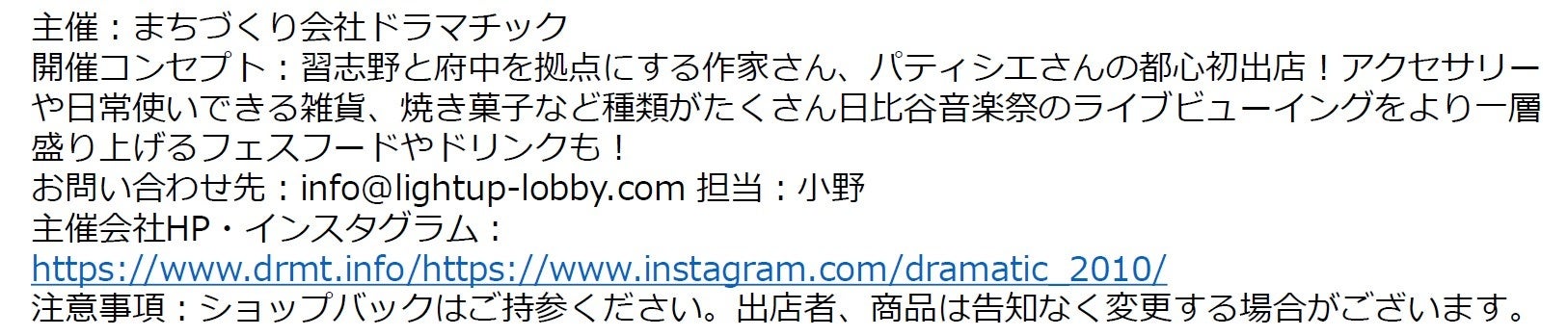 このイベントでは、日比谷公園で同時開催される「日比谷音楽祭2024」のパブリックビューイングも行われ、音楽祭の雰囲気を楽しみながら、さまざまな個性的なアイテムを見つけることができます。