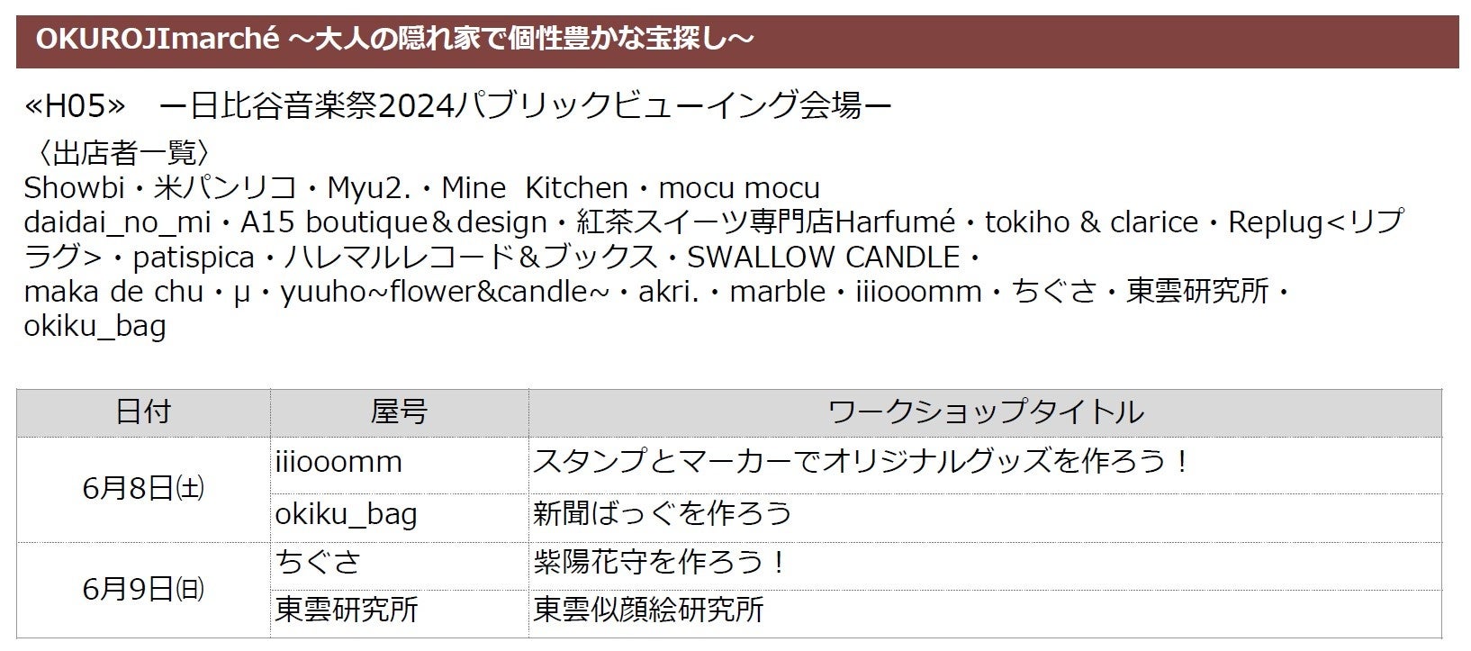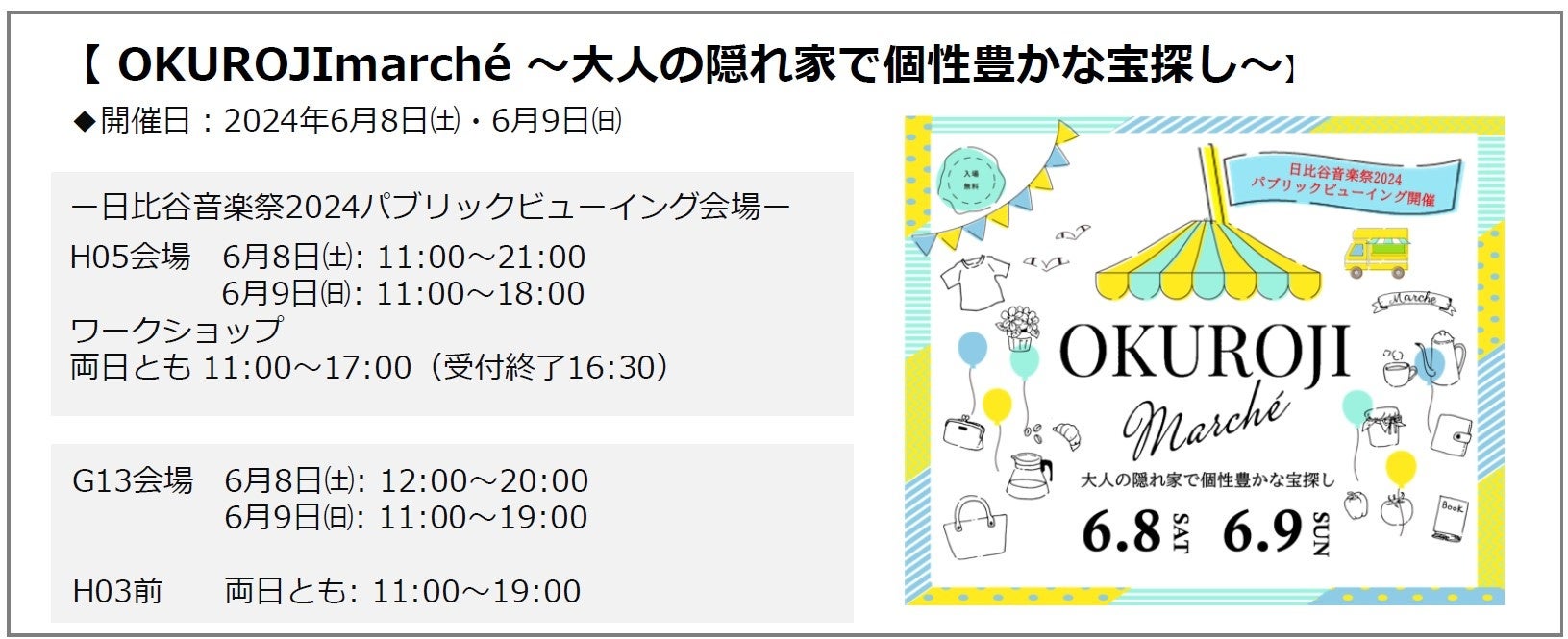 日比谷OKUROJIでは、2024年6月8日㈯・9日㈰の2日間、「OKUROJImarché ~大人の隠れ家で個性豊かな宝探し~」と題したマルシェを開催いたします。