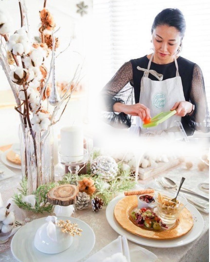 今回のテーマは「ホワイトクリスマス」。テーブルコーディネートを画像でご紹介しながらの楽しいトークショーとクリスマスデザートのデモンストレーション。
