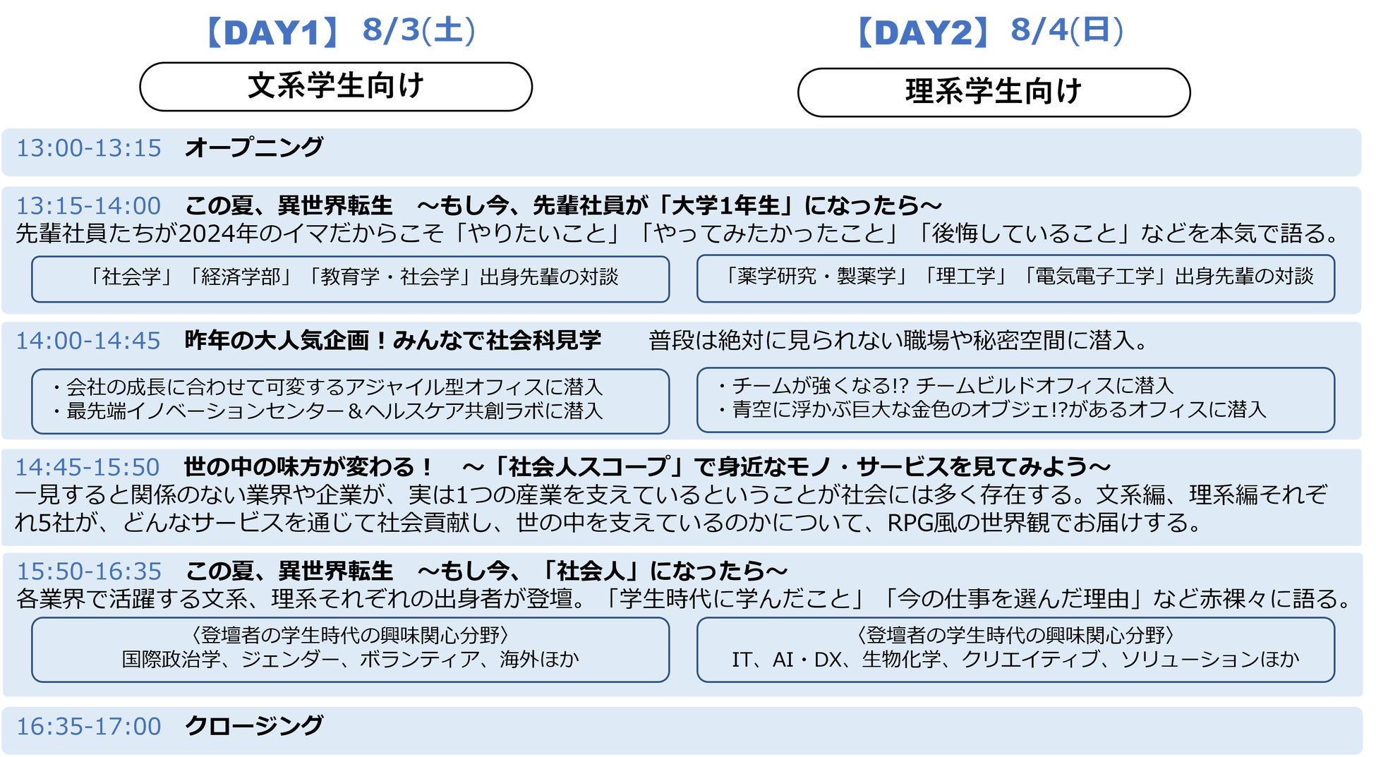 2024年8月4日(日)13:00-17:00 理系・情報学部生向け