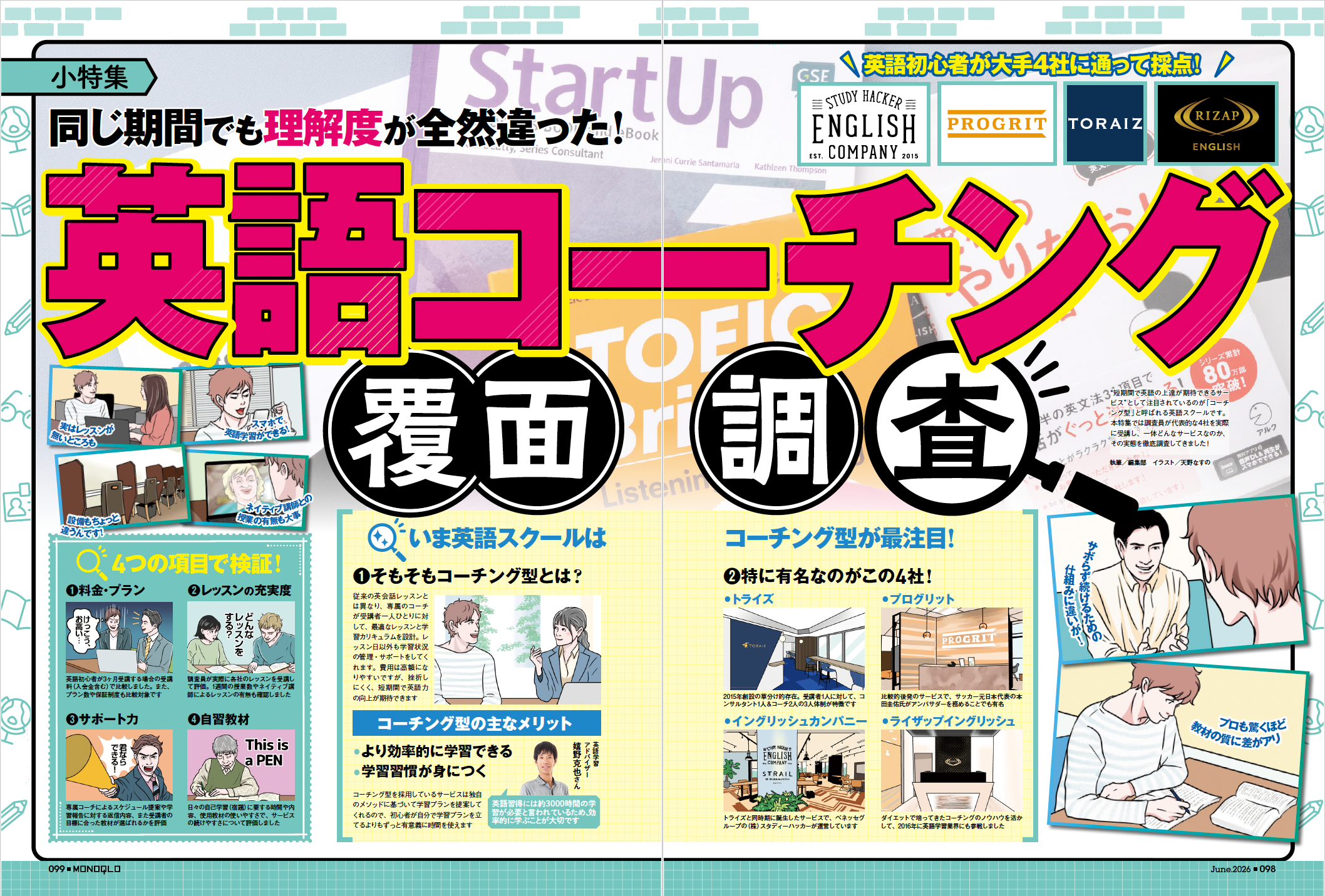 “短期間で英語の上達が期待できるサービス”として注目されているのが「コーチング型」と呼ばれる英語スクールです。本特集では調査員が代表的な4社を実際に受講し、一体どんなサービスなのか、その実態を徹底調査してきました!