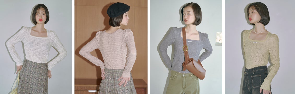 胸元のブランドネームと、ボーダー調にあしらったレースがポイントのカットソートップス。スクエアネックがデコルテを綺麗に見せてくれて、パフスリーブが気になる二の腕のシルエットをカバーしてくれます。また、ほど良い透け感のある素材を使用しているので、オールシーズン着用いただけます。