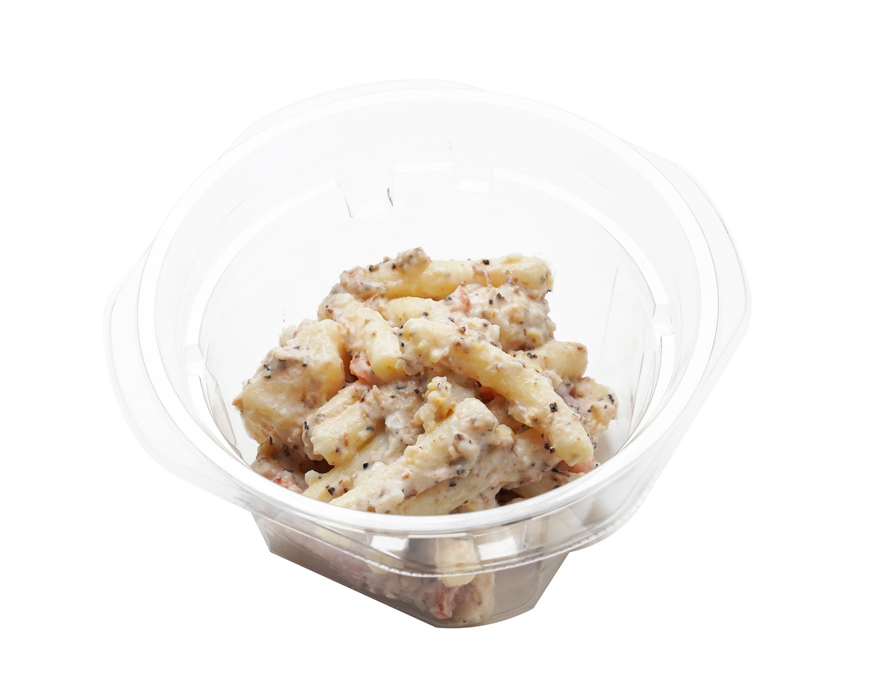 粗挽き胡椒がピリッときいた、クセになるマカロニサラダです。ベーコンとかつお節を混ぜ込んでおり、おつまみにもぴったりな一品です。