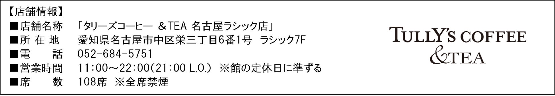 紅茶メニューを拡充したコンセプトショップとして、東海地区に初出店「タリーズコーヒー &TEA 名古屋ラシック店」を 7月19日(金) オープン