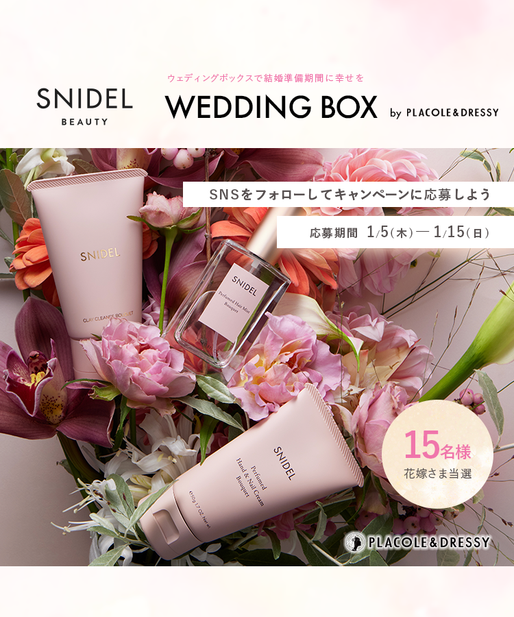 【15名プレゼント】花嫁の結婚準備期間 に幸せを届けるWedding Box -ウェディングボックス- 。この季節ならではのSNIDEL BEAUTY3点セットを花嫁に。