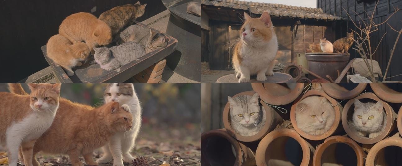 本作の一番の特徴は‟全シーン必ずどこかに猫がいる”というキャッチコピーにもなっているように、とにかく多くの猫が頻繁に登場している事です。四季の移ろいのなかで、猫たちが井戸端会議をするかのように集まる姿や、気持ち良さそうに日光浴を満喫する無防備な姿など、猫好きにとっては目を奪われる光景が盛りだくさん。岩合監督にしか撮れない猫たちの生き生きとした表情、写真家ならではの目線で捉える美しい島の景色、そしてそこに暮らす人々をユーモラスかつ繊細に描きだしていますので、是非チェックしてみてください!