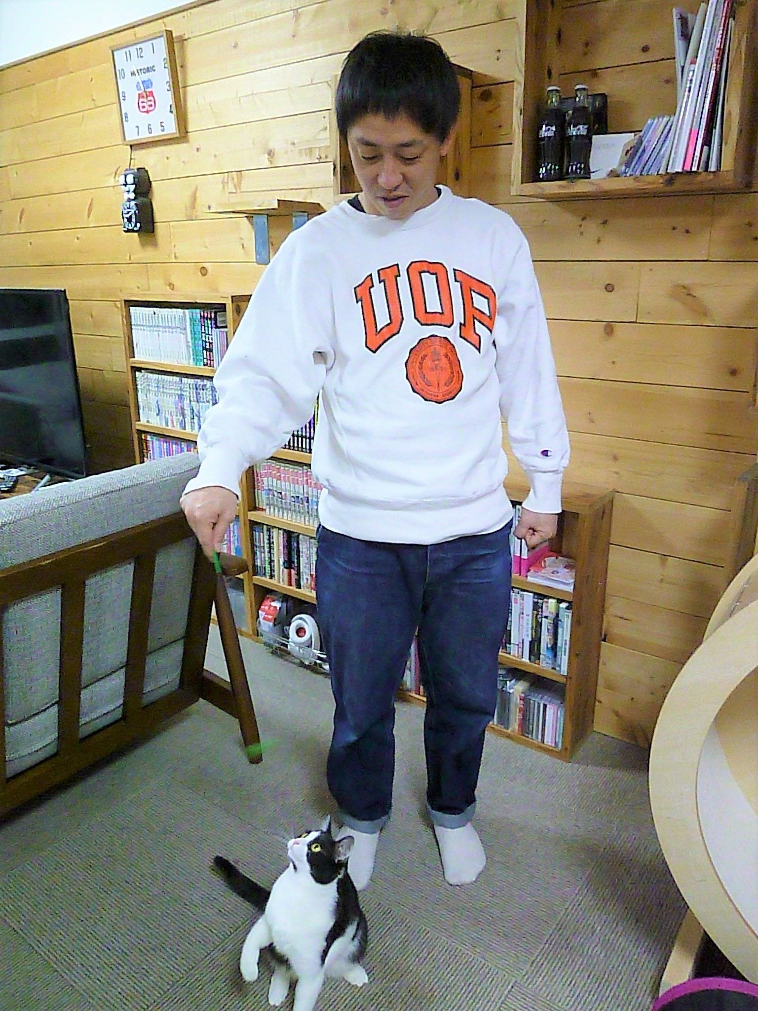 「会長を飼って間もない頃、猫に全然興味のない相方がいきなり事務所に来て『ちょっと会長借りるわ。』ってケージに会長を入れて外まで連れ出したんですよ。何やねん借りるって!女ちゃうかって(笑)いまだに誰に見せに行ったのか謎です。」