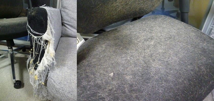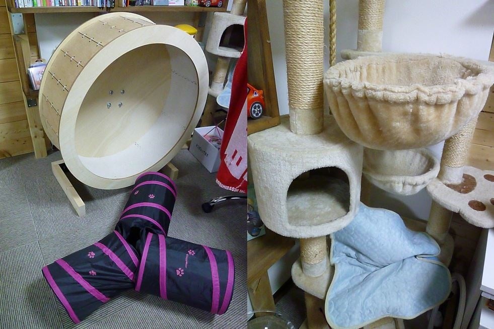 事務所はキャットウォークや回転ホイールなど猫中心のつくりになっており、ソファーは爪とぎの影響でボロボロ、イスには猫の毛がびっしり・・・。しかしそんな光景が森田さんにとっては居心地がいいという。