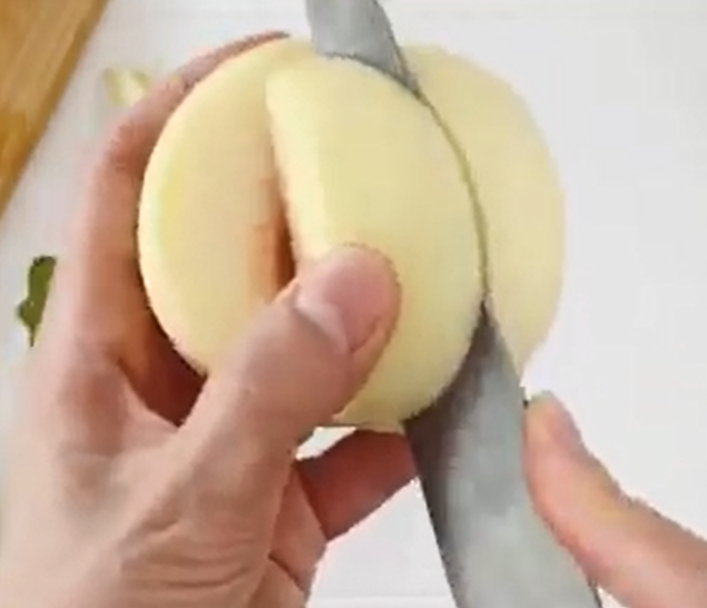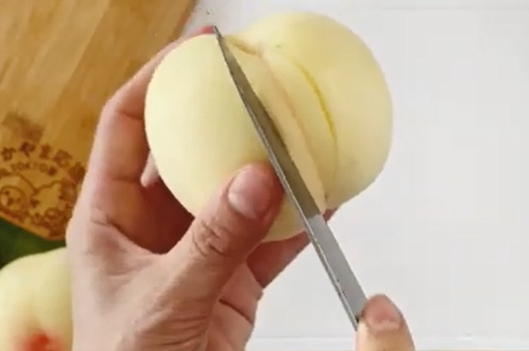 ※実が固く、どうしてもむきにくい場合は湯むきがおすすめ。白桃のおしりの部分に軽く十字に切り込みを入れ、熱湯にさっとくぐらせすぐに氷水につけると簡単に皮をむくことができます。