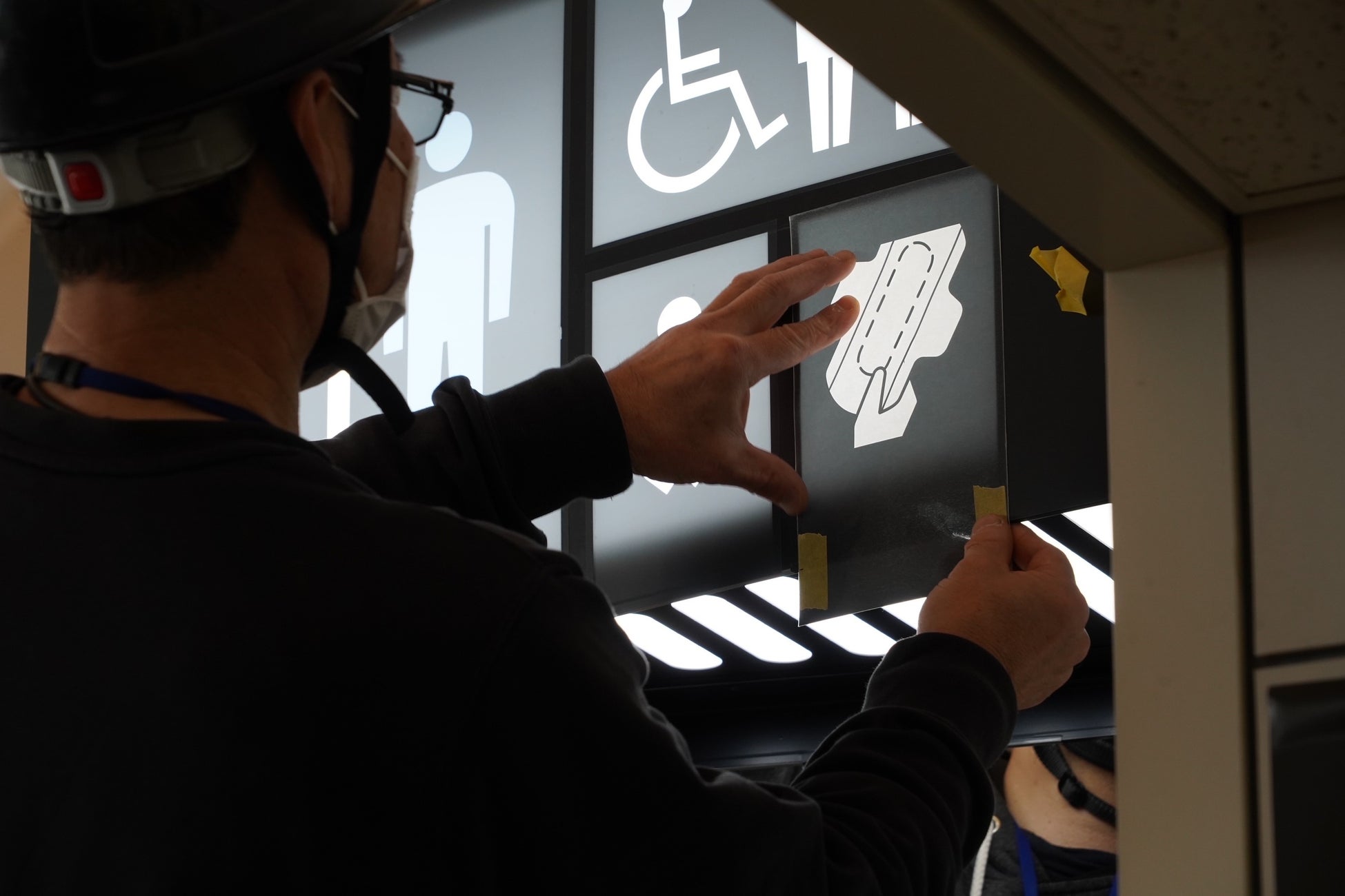 ・生理用品無償提供を示すピクトグラムの設置(第1ターミナル国内線 2022年1月設置)