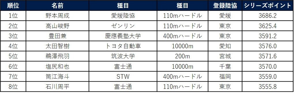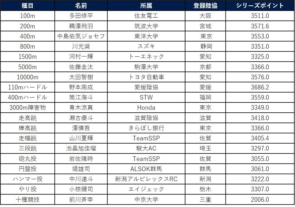 【日本グランプリシリーズ】2023シーズン シリーズチャンピオン・種目別チャンピオンが決定!野本周成&寺田明日香が陸上界最強に輝く!
