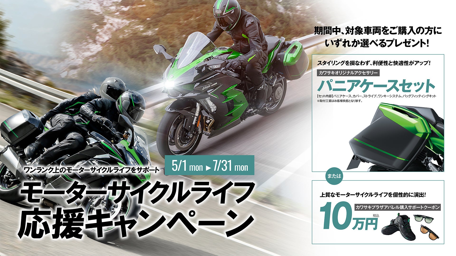 カワサキプラザ パニアケースまたはカワサキプラザアパレル10万円分をもれなくプレゼント