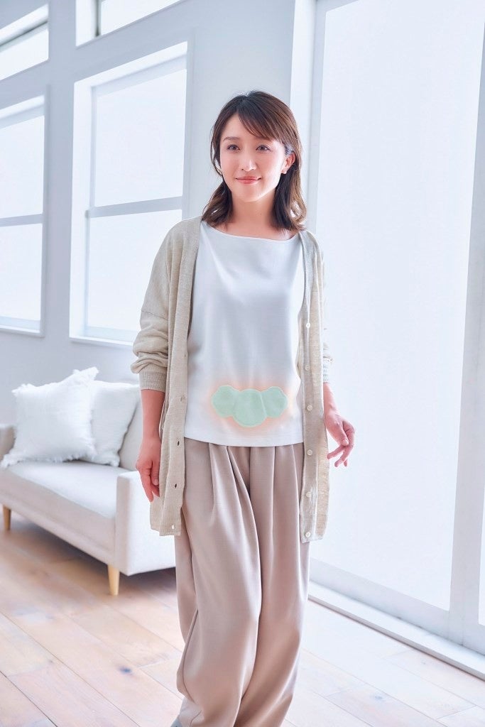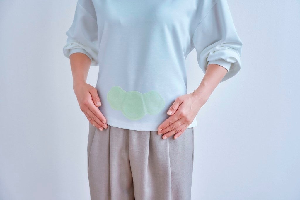 お腹部分に貼ってあたためめぐる温熱メソッド「よもぎ温熱メソッド お腹用」