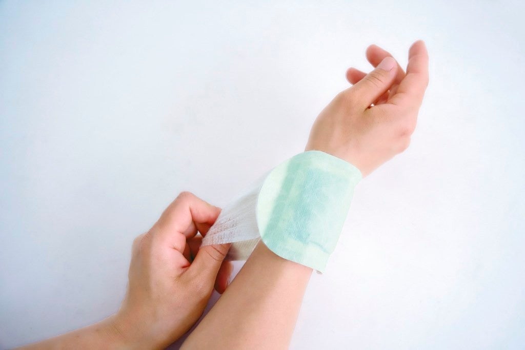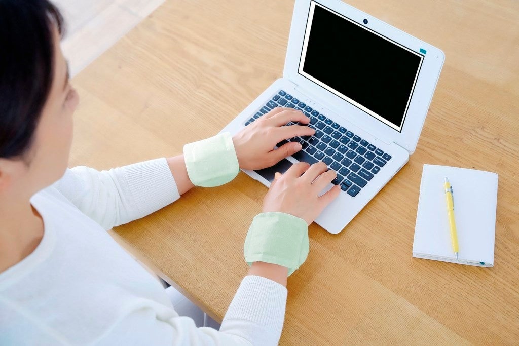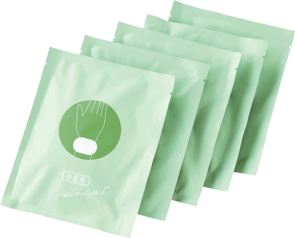 リストバンド型の温熱ケア。手首にぴったりフィットしてズレにくく、デスクワーク中や家事の合間にも快適に使用できます。使い捨てタイプで、よもぎのほのかな香りとともに、手首を約40℃のやさしい温度で約4時間しっかり温めます。