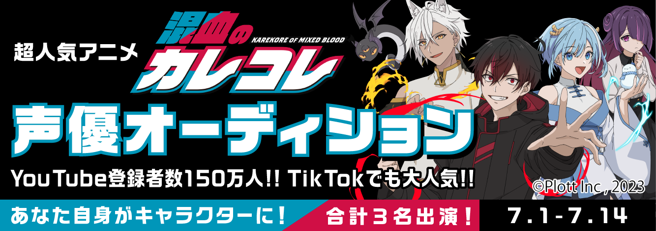 「超人気アニメ『混血のカレコレ』声優オーディション」の概要は、以下の通りです。