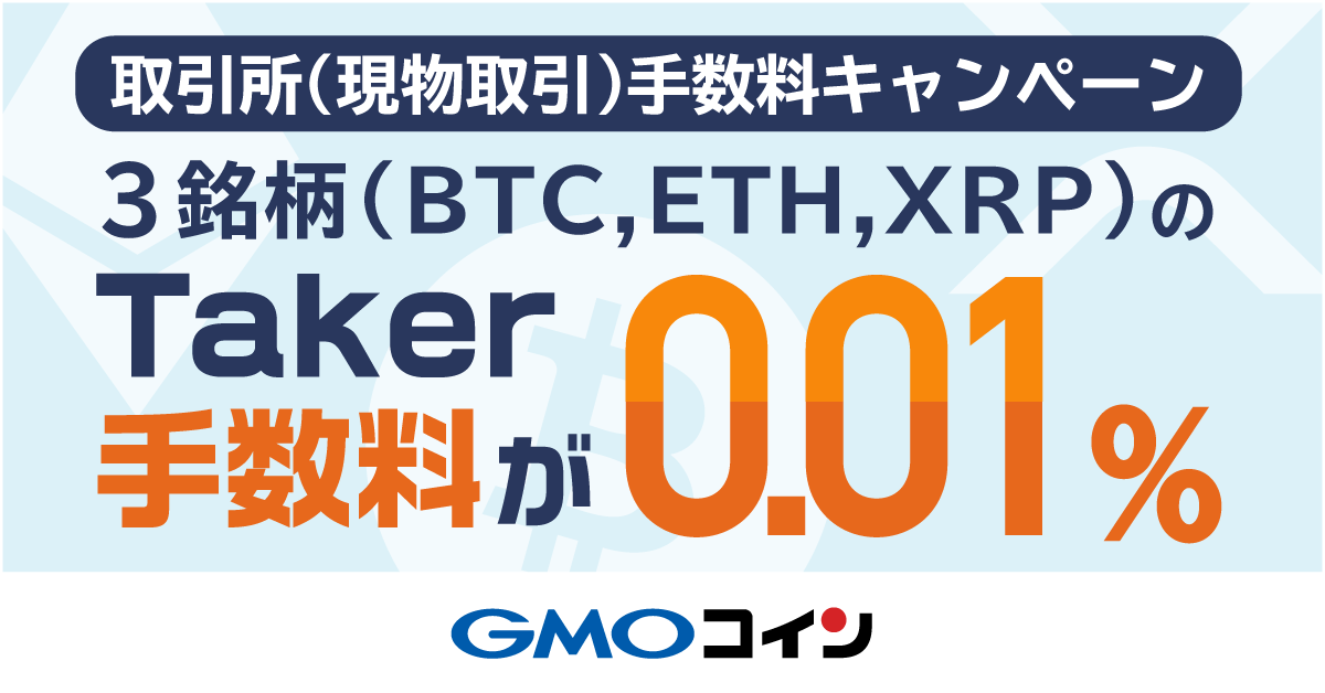 暗号資産取引のGMOコイン:Taker手数料が0.01%に!取引所(現物取引)手数料キャンペーン開催のお知らせ